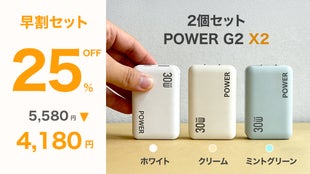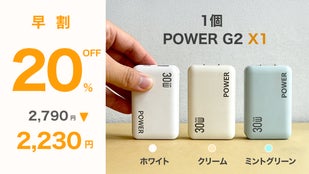 GaN(窒化ガリウム)採用で、コンパクトかつ効率的な充電を実現。2ポート対応・30W出力の超薄型充電器「POWER G2」。