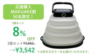 「Makuake(マクアケ)」は、実行者の想いを応援購入によって実現するアタラシイものやサービスのプラットフォームです。このページは、 プロダクトカテゴリの 「太陽光で充電可能!地震災害時の非常用ソーラーLEDライト キャンプ用ランタンにも」プロジェクト詳細ページです。