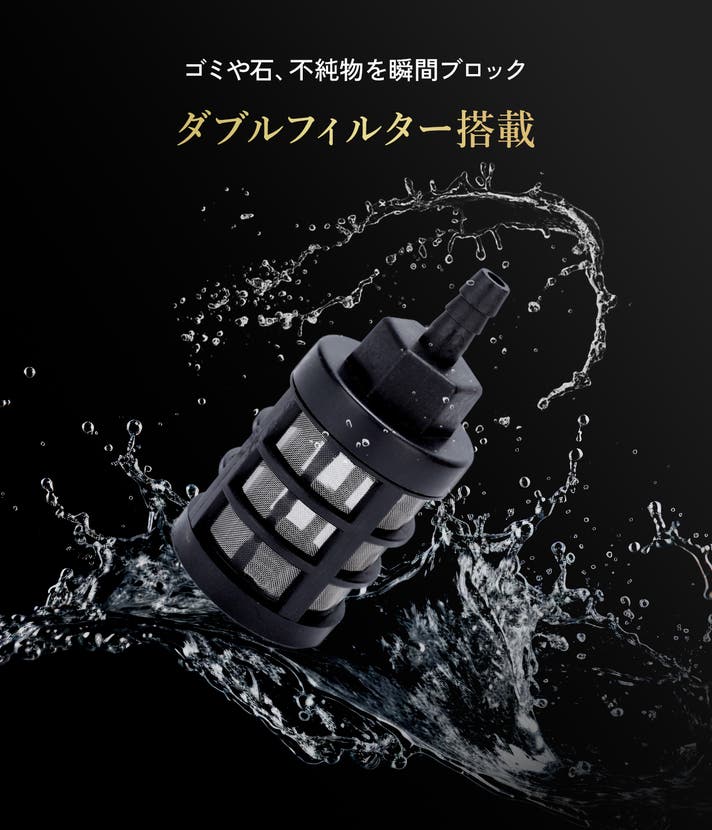 ※川や泥水などフィルターが取り除けない砂泥等が混じる可能性がある水を使用した場合は、車体に傷が付く恐れがございますのでご使用をお控えください。