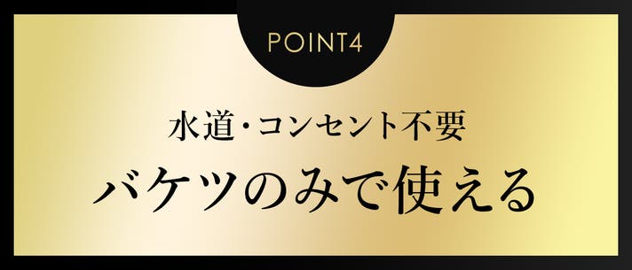 水道や電源につなぐ必要がなく、バケツ1杯の水があれば使用可能です。
