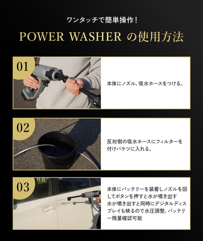 「思い立ったときにすぐ使える」それが、POWER WASHERを無理なく使い続けやすい理由です。