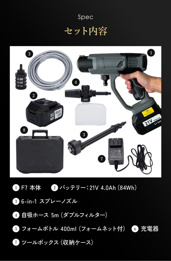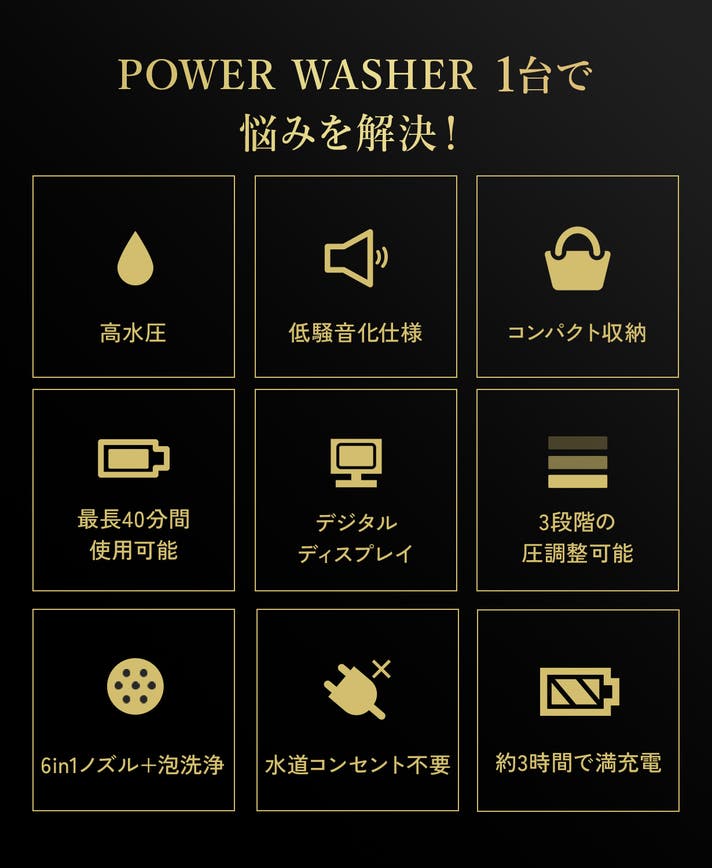 - 【コードレスでも頼れる水圧】電源・水道接続不要!頑固な汚れまでしっかり洗い流せる爽快な洗浄力