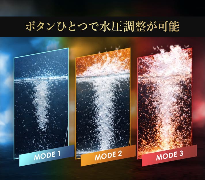 ボタンひとつで3段階の水圧調整が可能