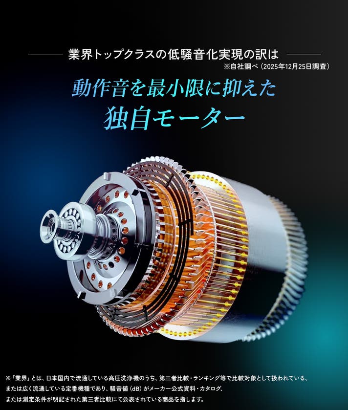 深夜・早朝の洗車やベランダ掃除でも、周囲を気にせず使いやすい低騒音化を実現しました。