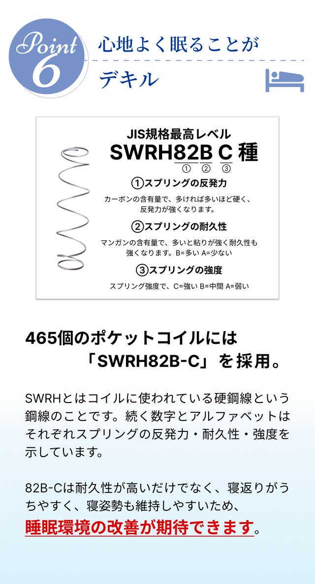 - JIS規格最高クラスのポケットコイル使用。ウレタン交換で寝心地変わらず使えるマットレス