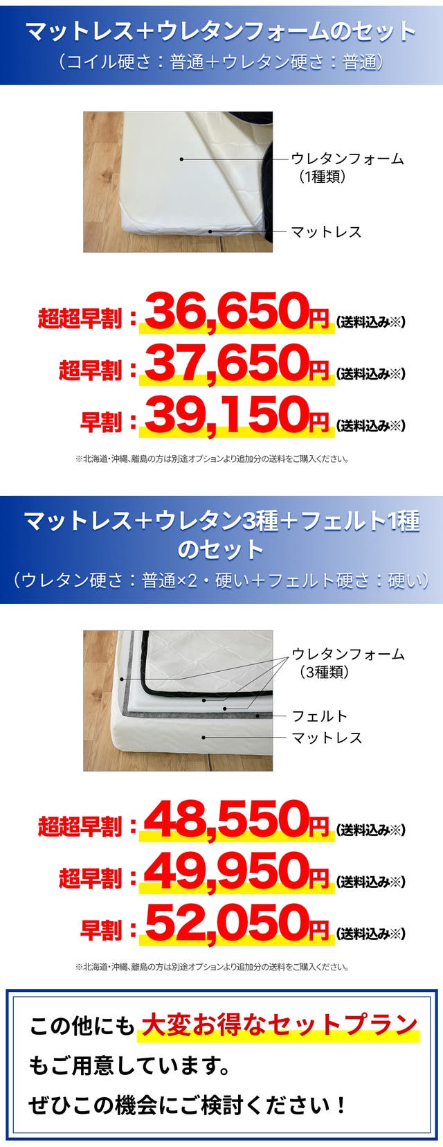 【超早割32%OFF】デキルマットレス×2+調整用ウレタン3×2