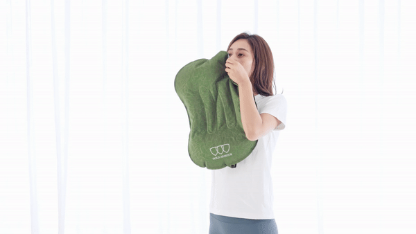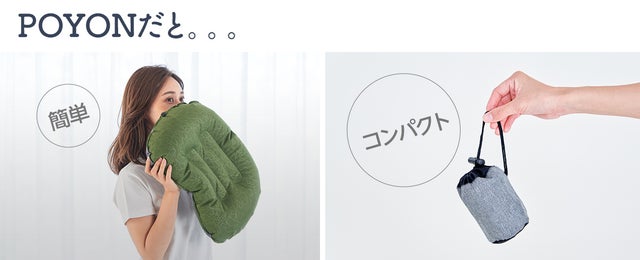 POYON(ポヨン)は空気を入れて膨らませて使用します。3~5吹き程度空気を吹き込むだけで簡単に膨らますことができます。