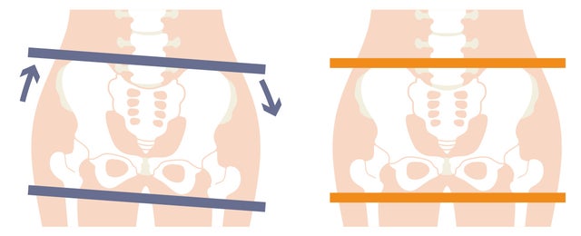 骨盤周りの筋肉が上手に動かせず硬く固まった状態になると骨盤のゆがみに繋がります、前後左右の高さがズレると、ぽっこり腹やたるみ尻など見た目にも与える影響が出てきます。