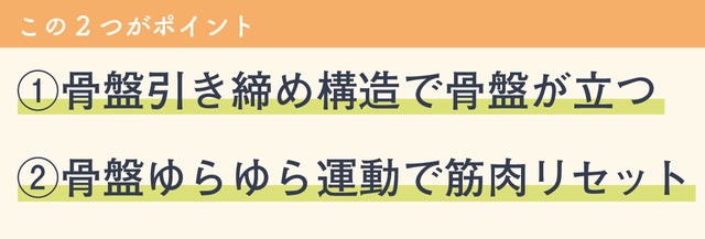 左右からの引き締めと骨盤傾斜サポートで自然と「骨盤が立つ」状態になります。