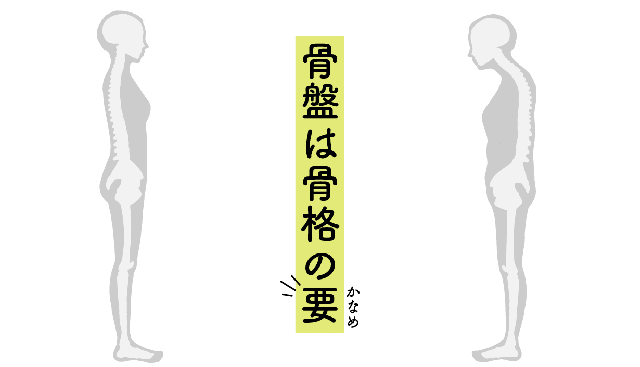 骨盤は上半身と下半身をつなぐ骨格の要です。骨盤には腰、脚、おしりを動かす筋肉が結びついています。