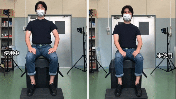 使用した時は頭の位置もブレずに、身体の軸がまっすく保たれています。身体の軸がブレることなく骨盤周りだけが、スムーズに、規則的に動くことが分かりました。