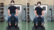 「POYON(ポヨン)」に座り、左右に骨盤を動かす「骨盤ゆらゆら運動」を行うことで1人ではできない本格的な運動が行えます。