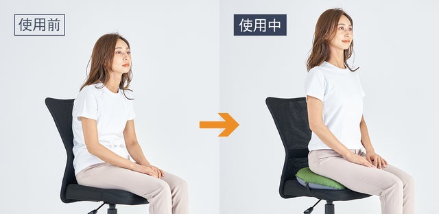 骨盤周りの引き締めをサポートしながら、座るだけで背筋が伸び、 自然と美しい姿勢に。