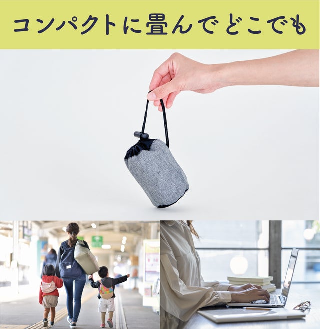 空気を抜いて畳むことで、手のひらサイズになり収納場所に困ることもありません。カバンに入れて持ち運ぶこともでき、場所を選ばず使うことができます。