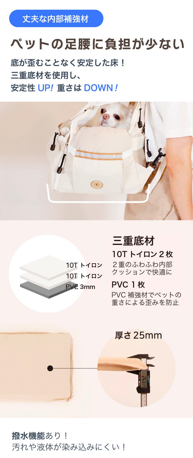 - ポケットたくさんで飼い主が便利に!底材がしっかりしているからペットは快適に!