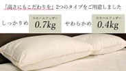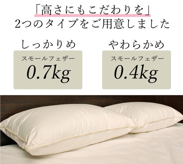 スモールフェザー0.7kgのしっかりめと0.4kgのやわらかめをご用意しました。お好みに合わせてお選びいただけます。