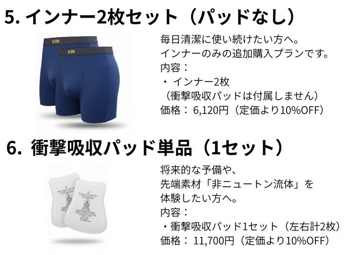 ・衝撃吸収パッド対応インナー:2枚×1セット(合計2枚)