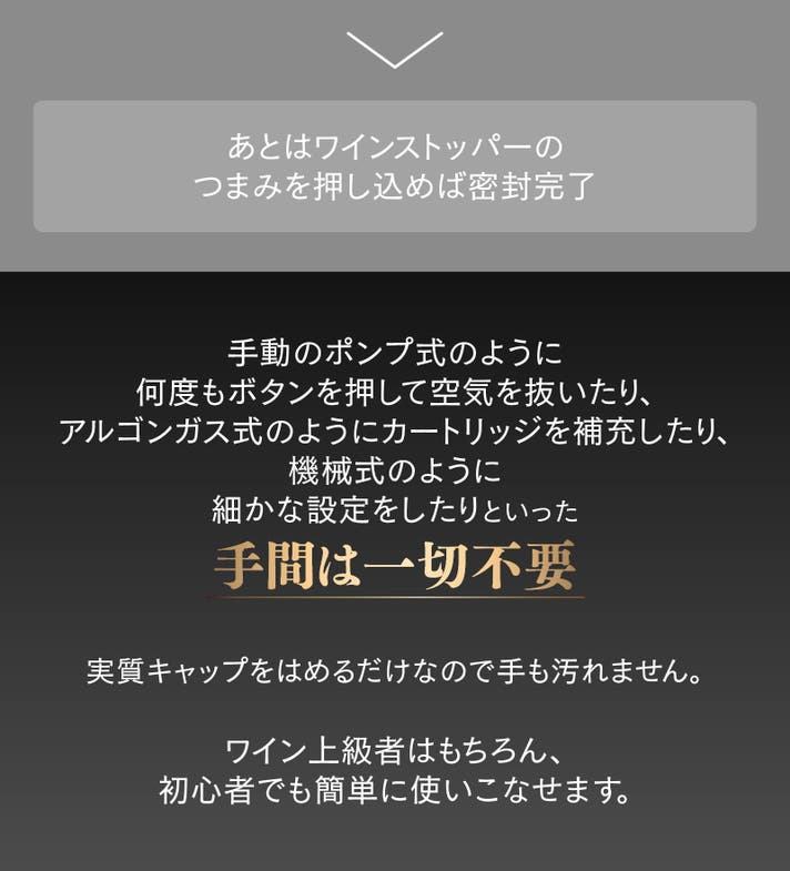 開栓後のワインを、香りや味わいを損なうことなく、安定して保存する――