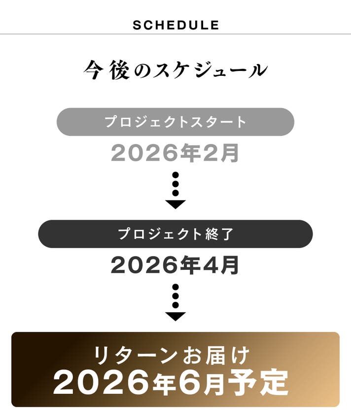 このプロジェクトはAll in型です。目標金額の達成に関わらず、プロジェクト終了日の2026年04月12日までに支払いを完了した時点で購入が成立します。