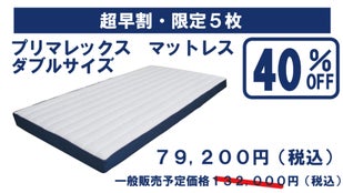 先着5名【超早割】プリマレックス マットレス ダブルサイズ 40%off