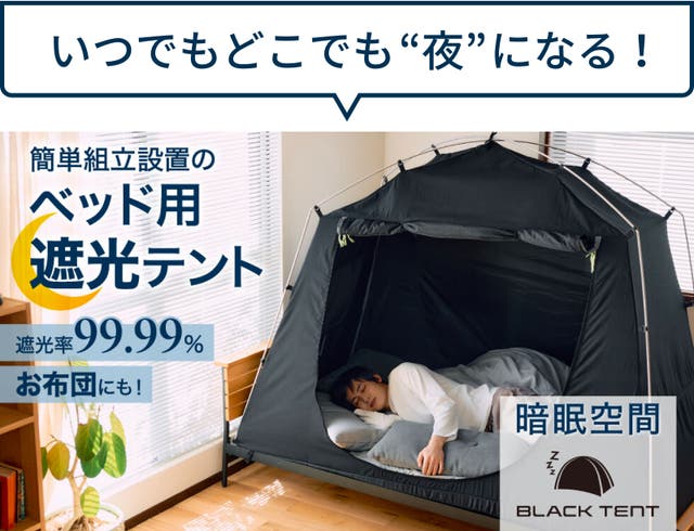 睡眠環境を整えるベッド用遮光テント!「暗眠空間ブラックテント」