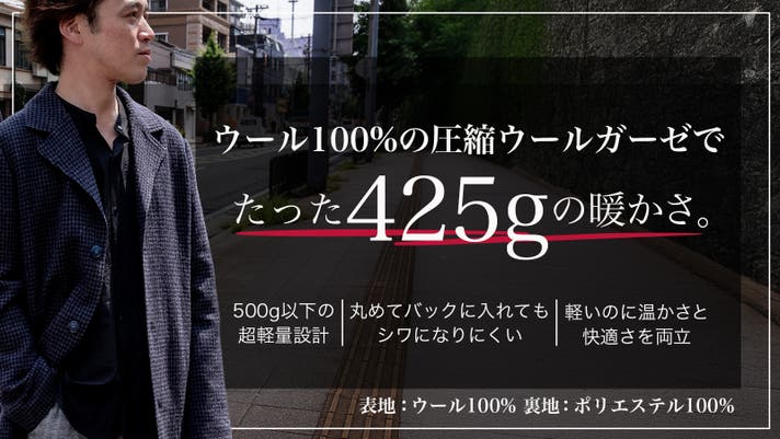 - 冬のメンズコートは重くてかさばる…これを解消!とにかく軽くしなやか