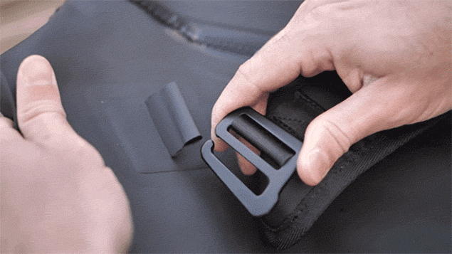 バックパックとして使う際のフックは航空機にも使われる7075アルミニウム合金を使っています。