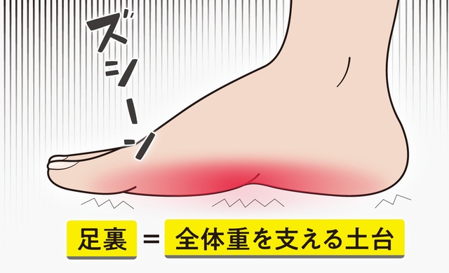 さらに足裏は全身の体重を支える土台となる重要な役割を担っています。毎日の1歩1歩を支えており、歩数が多い方や立ち仕事が多い方は特に負担が大きいことは明白です。