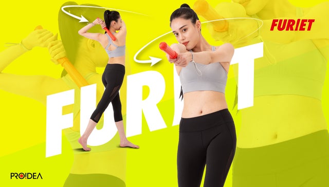 「フリエット」は、誰でも簡単にできる素振りの動きを、楽しく効果的な筋トレに変える構造にこだわった、新感覚の筋トレアイテムです。