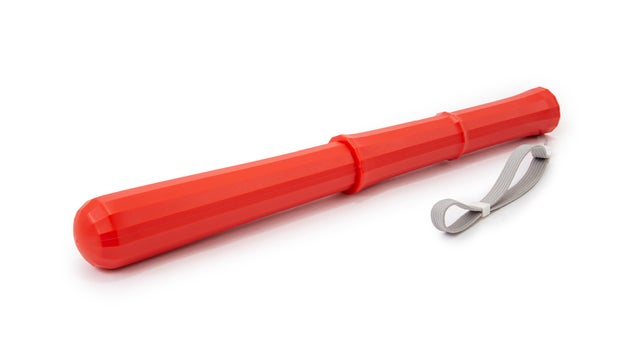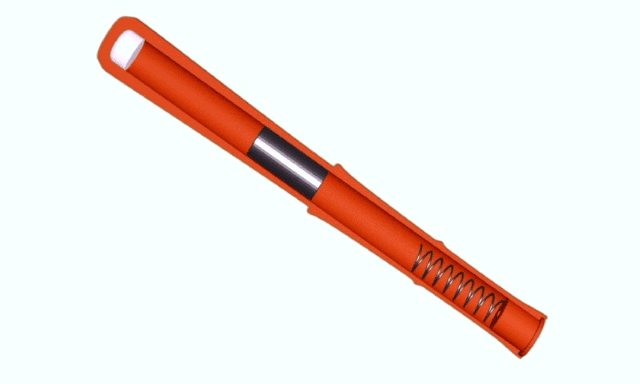 さらに、スライドするおもりとぶつかったときに、振動をかもしだすバネ構造を持ち手部分に配しました。素振りして動きを止めるときに、振動に耐えながらしっかりグリップすることになるため、普通の棒を振るよりも、筋肉をより効果的に鍛えられます。