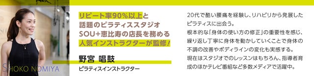 ピラティストレーナー 野宮唱鼓先生 監修。豊富なエクササイズプログラム