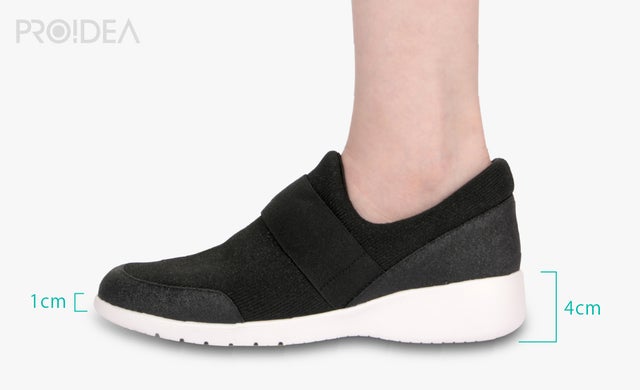 つま先とかかとの高低差が3㎝で、履くだけで美脚魅せ。適度な厚底感で、地面からの衝撃もしっかり吸収します。
