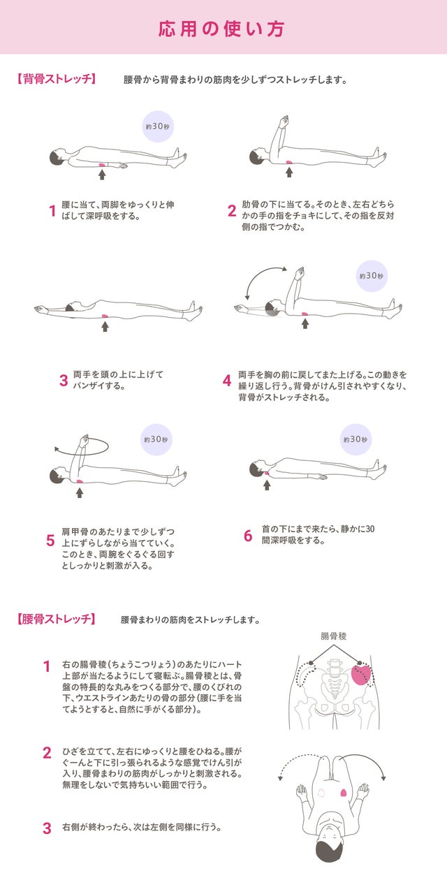 point1:指圧代用・ゆらし・ストレッチで、骨盤まわりをぐいぐい刺激!