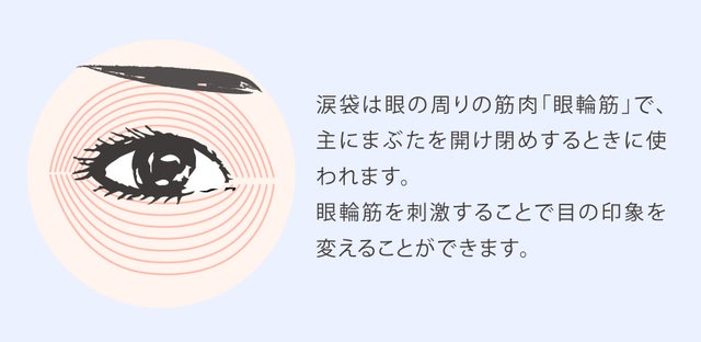 涙袋は目の周りの筋肉「眼輪筋」の下部が目元を引き上げることで出来ます。神野さんのよると「ここをダイレクトに鍛えることが大切ですが、とても小さくて繊細な筋肉なので、普段使い慣れていない人、筋力が衰えている人は、やろうとしてもなかなかピンポイントに意識するのは難しいのです」とのこと。
