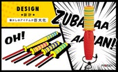 「ズバット」は懐かしのおもちゃ「ペーパーヨーヨー」の構造をヒントに設計しました。振り上げるたびに伸びる約1mのヨーヨー構造が「もっと振りたい」「またやりたい」欲をそそります。振っている姿も見栄えよく、つい人に見せたくなるコミカルな動きです。