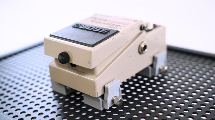 A. 固定パーツ(クランプ)は挟み込む箇所の幅が約38mm以上あるエフェクターに対応しています。また、特殊な形状の機種については、取り付けできない場合があります。あらかじめご了承ください。