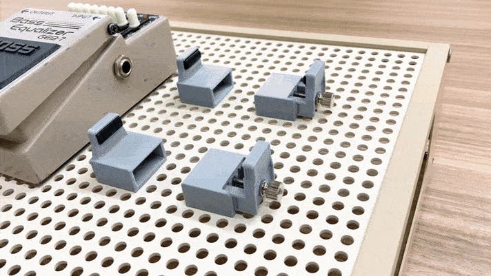 A. 通常は1台のエフェクターに対して2組のクランプでの取り付けを推奨しています。ただし、極小サイズかつ軽量なエフェクターであれば、1組でも固定できる場合があります。その場合は、取り付け後にしっかり固定されているかを必ずご確認ください。