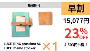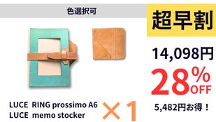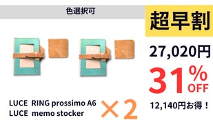 LUCE memo stockerが付いてくるマクアケ限定セットは、超早割・早割・最終割にてお得にお買い求めいただけます。
