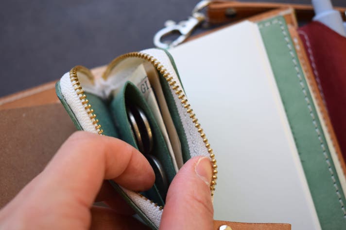 ファスナー式のLUCE coin caseは、小銭やお札を仕分けて入れられます♪