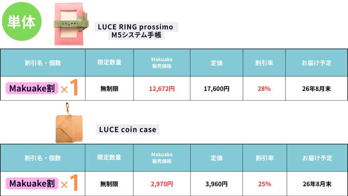 【makuake割】LUCE RING prossimo M5システム手帳 1個