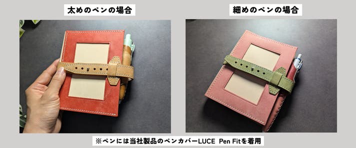取り外し可能のペンホルダーは、左側のポケットにも入れていただけます。