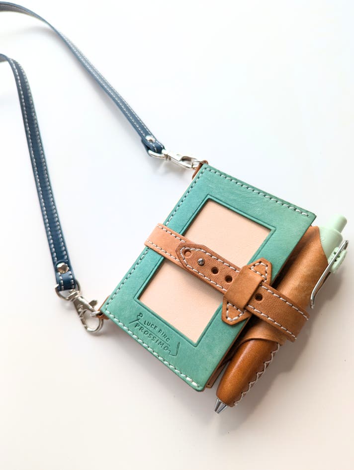 LUCE RING prossimo shoulderと組み合わせて使えるカードケース。封筒みたいな可愛い形です。蓋の部分を本体に差し込める構造です。単体でも使っていただけます。