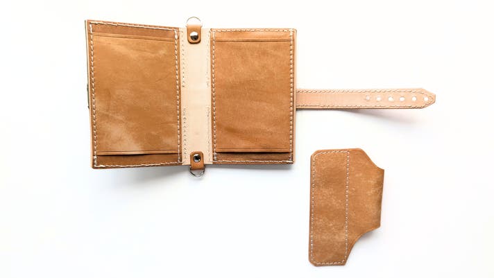 内面のベージュの革は国産のヌメ革を使用しています。