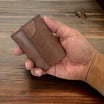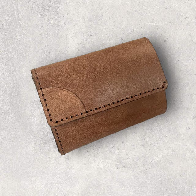サイズ:縦87mm×横60mm×厚み25mm(金具部分を除く)(カード5枚・コイン15枚・紙幣10枚入れた状態)(カードやコインの種類、革の状態を見ながら厚みを調整していますので個体差が出ます。)
