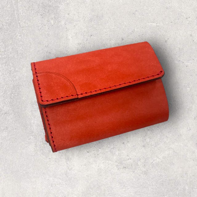 今回、コンパクト財布を作る上で数々の試作を行いました。その中でコンパクトさゆえの欠点や問題点を見つけることができました。その中でもカードやコインが落ちやすい、耐久性がない、この2点が大きな問題であり、課題でもありました。そこで小銭入れはフタが勝手に開かないように改善し、カードケースは1枚しか入っていない状態でも決まった動作でしか出すことができない設計にしました。耐久性は、内側に皮を1枚追加することで、耐久力を大きく上げることで解決しました。このパーツがなければ、あと2ミリ薄くすることができましたが、長く使ってもらえるように苦渋の決断をいたしました。