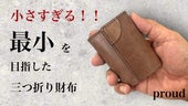 そのコンセプトから開発したのが超コンパクト三つ折り財布プラウドになります。財布の中で曲げることのできないカードが1番大きな収納物となります.。そこでproudはカードのサイズに近づけるため無駄な部分を削ることで、縦87mm横60mmというコンパクトさを実現しました。