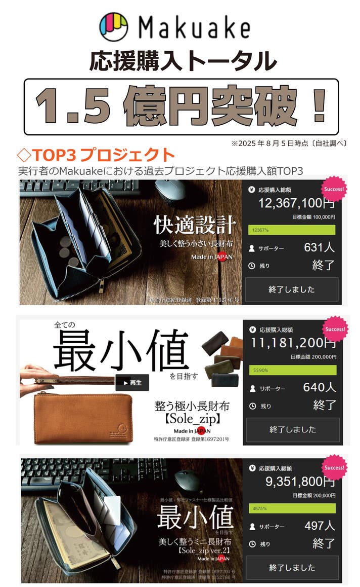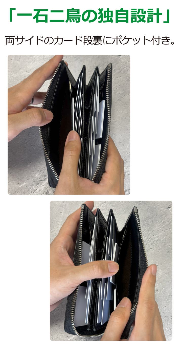 - カード収納に特化!「カードケース」と「長財布」を1つにした独自のカード特化型ミニ長財布が誕生