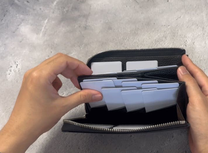 一般的な財布が膨らんでしまうのは、カードが何枚も重なってしまう事が原因です。