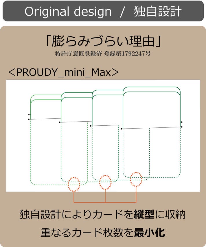 「PROUDY_mini_Max」は解説画像の様に中央のカード段に8枚入れてもカード同士の重なりが最大2枚になる仕様です。