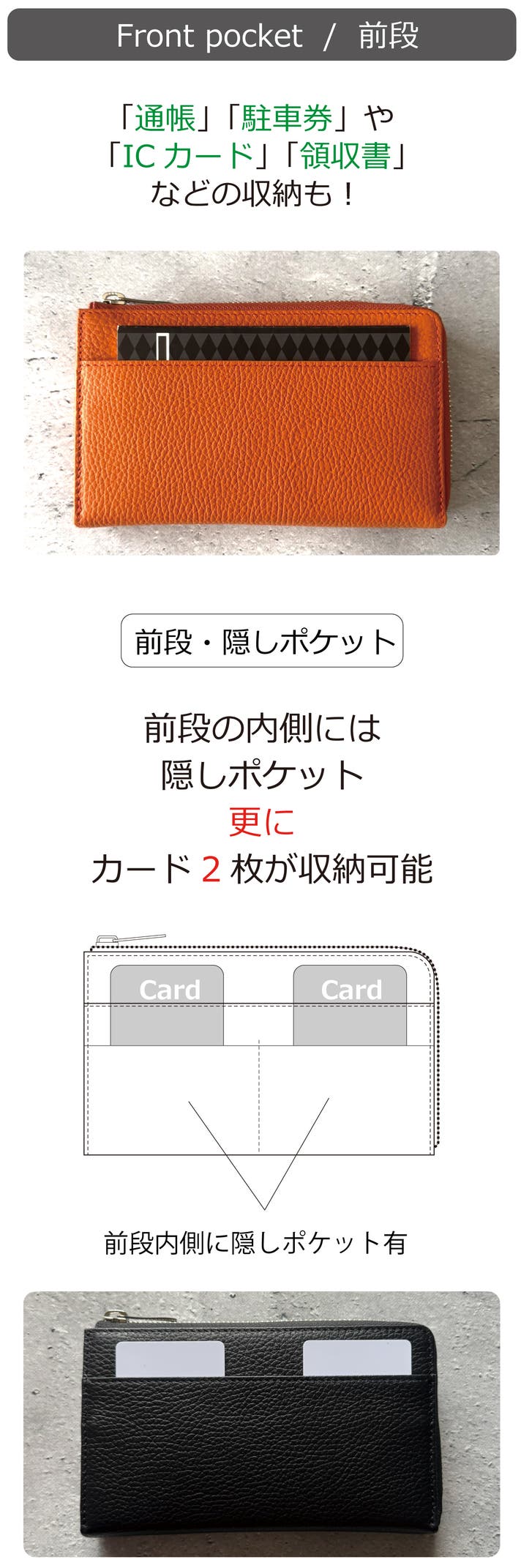 ◆カード段に名刺を収納しても便利!突然の名刺交換で名刺入れを持ち合わせてなくても焦らずに対応可能。